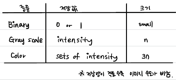 Intensity는 8bit image라면, 0~255($2^{8}-1$)의 Intensity를 표시할 수 있다.