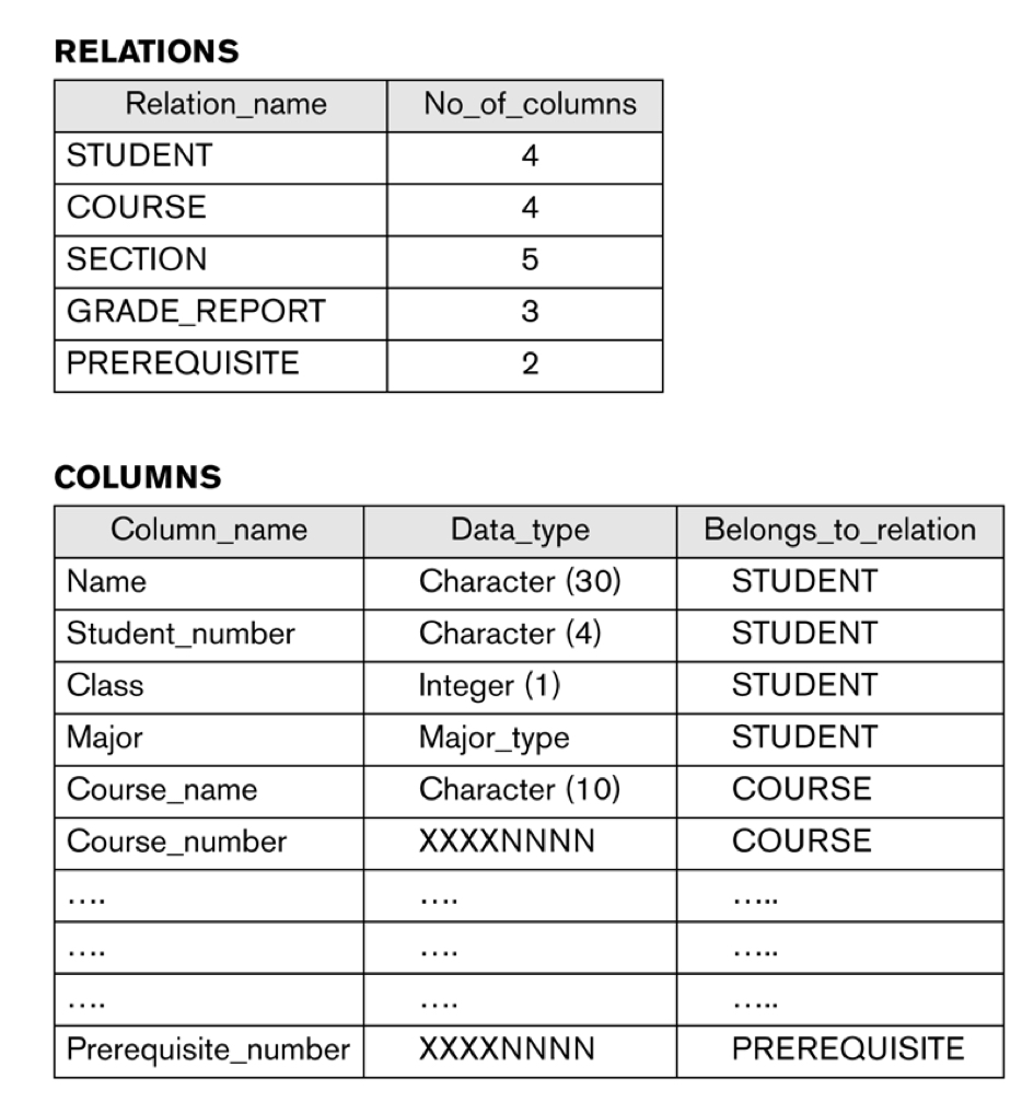 | Entity in Mini-world | Mini-world에서의 attributes ex) Mini-world = UNI Entity1: STUDENT Entity2: COURSE Entity3: SECTION Entity4: INSTRUCTORs |