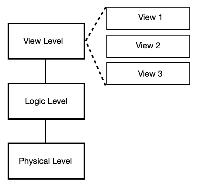 View level, Implementation level, Physical level로 구성되어 있다.