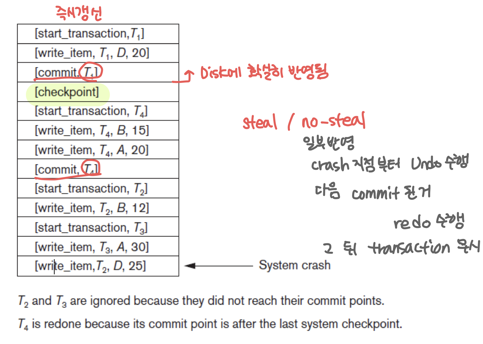 물리적으로 바로 반영됨 UNDO만 필요 (steal/force) UNDO, REDO 필요 (steal/no-force) |