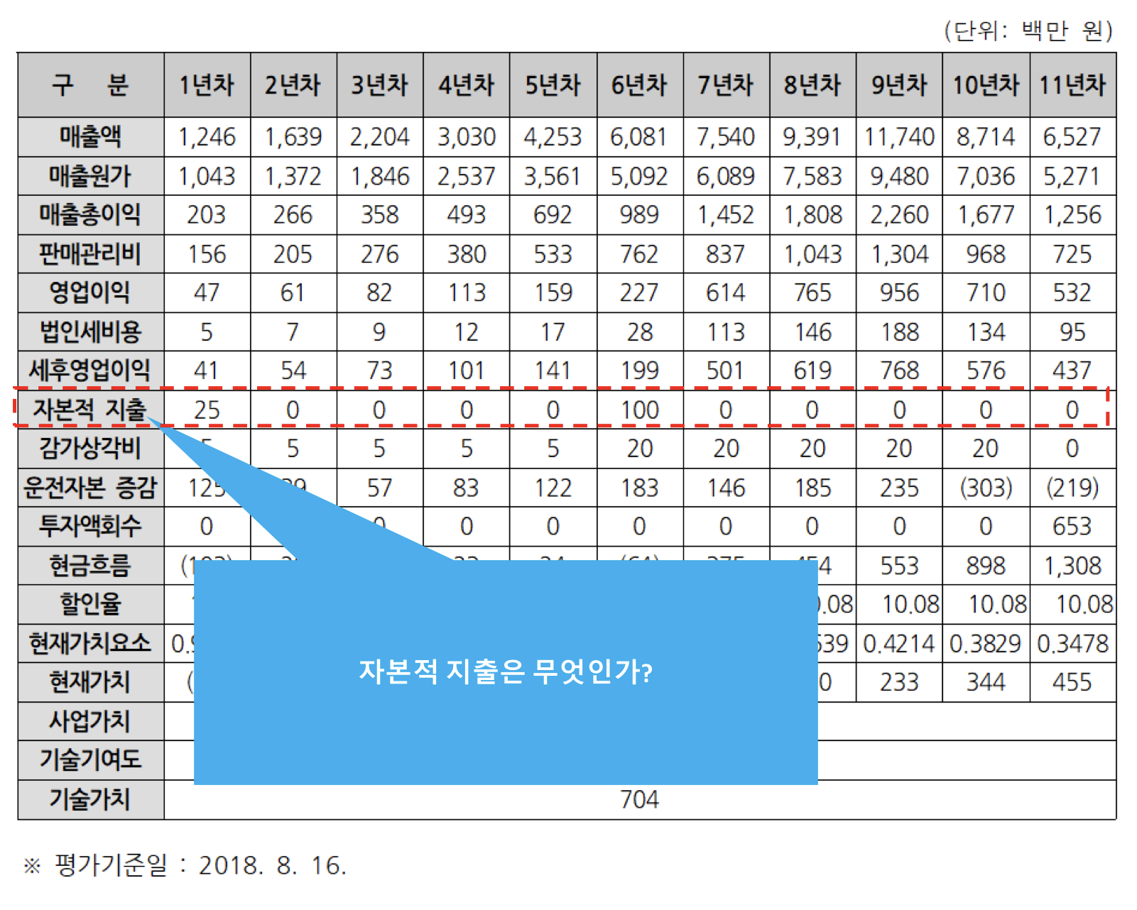 | 현금흐름 추정 | 매출원가, 판매관리비, 자본적 지출, 감가상각비, 운전자본 추정 |